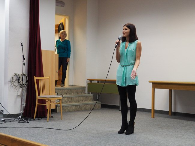 "Podzim pro seniory" je název maturitního projektu Michaely Woffové. Dnes jsem si vyslechli umělecký přednes pana Jaroslava Brendla...