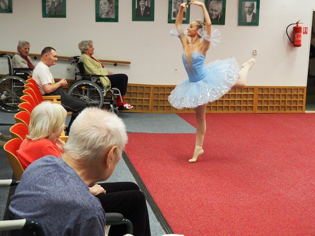 Podzim pro seniory - v rámci maturitního projektu Michaely Woffové jsme sledovali taneční (Taneční konzervatoř Brno) a hudební vystoupení (hudebník Dan Kikta).