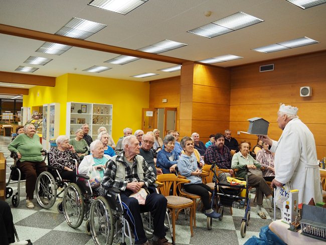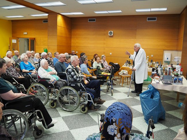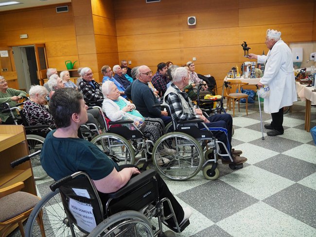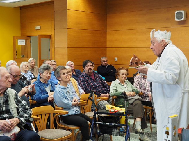 "Podzim pro seniory" je název maturitního projektu Michaely Woffové. Dnes jsem si vyslechli umělecký přednes pana Jaroslava Brendla...
