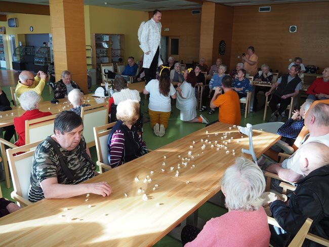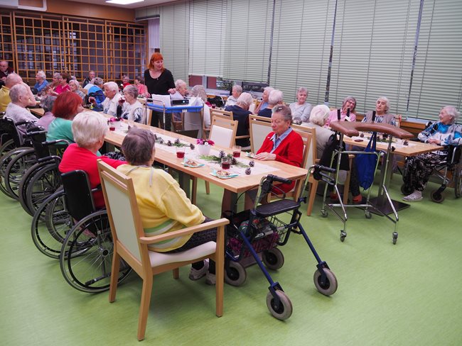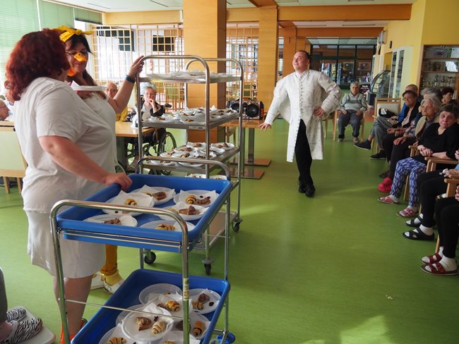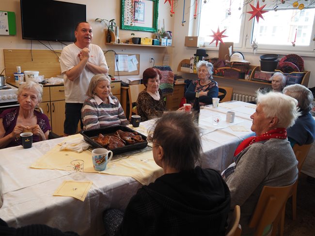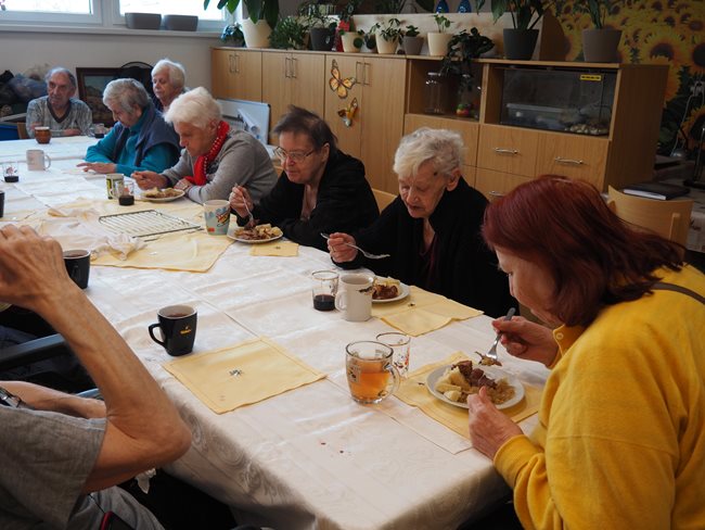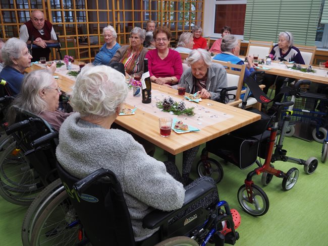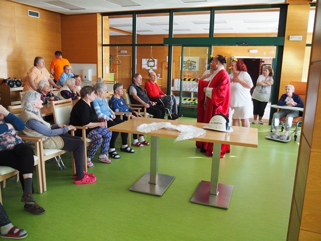 V našem domově pro seniory je ubytováno 404 klientů. Kromě seniorů, kteří trpí úbytkem fyzických schopností pečujeme také o klienty, kteří jsou v různém stádiu demence. Rádi si s klienty připomínáme různé tradice a zvyky. Svatý Martin k nám sice nepřijel na bílém koni, ale přivezl nám husí hody, ochutnali jsme svatomartinské víno, paštiku a rohlíčky. Aktivizační pracovníci si pro nás připravili povídání a vtipnou scénku o legendě, která je spojována s příjezdem svatého Martina a jeho husího doprovodu. Již se těšíme na adventní čas, který je u nás provázen bohatým kulturním programem.