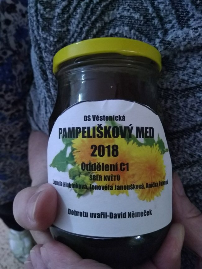 Z pampelišek jsme připravili výborný med s vlastní etiketou na skleničkách.