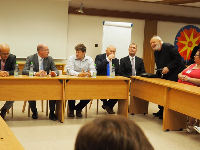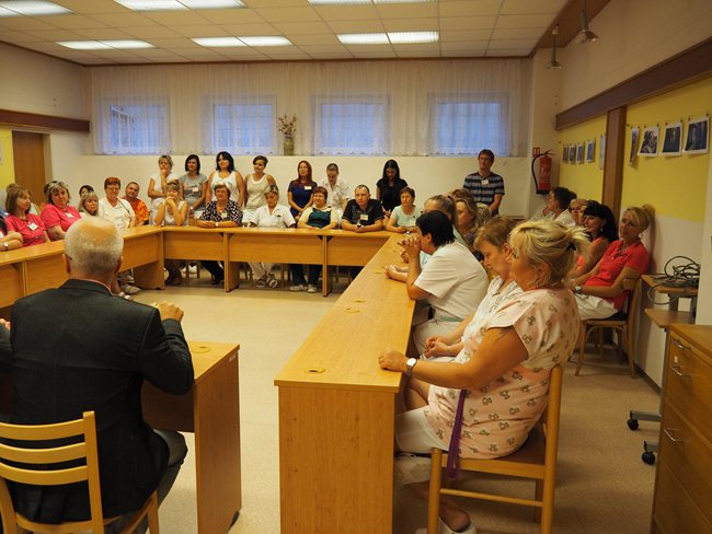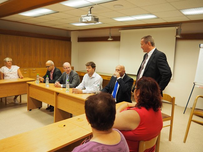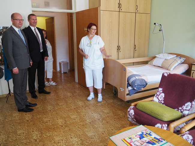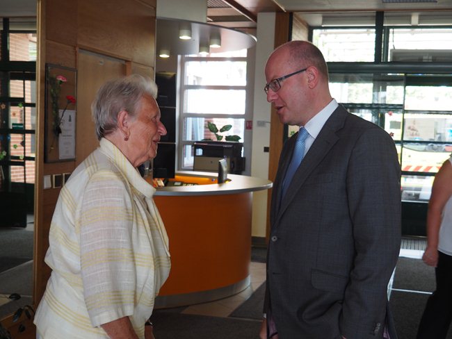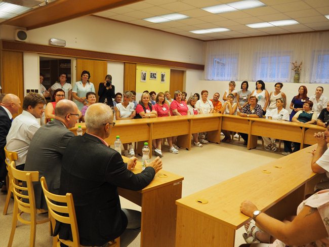 Premiér ČR pan Mgr. Bohuslav Sobotka navštívil zaměstnance našeho domova. Spolu s Ing. Miroslavem Foltýnem, PaedDr. Janem Polákem, CSc., Mgr. Matějem Hollanem a PhDr. Jiřím Čejkou, ktěří se ve svých funkcích starají o sociální služby v Brně, si pan premiér prohlédl prostory domova a diskutoval se zaměstnanci. Témata debaty se týkala sociálních služeb, platů, novely zákona o sociálních službách, podpory domácí péče o seniory atd.