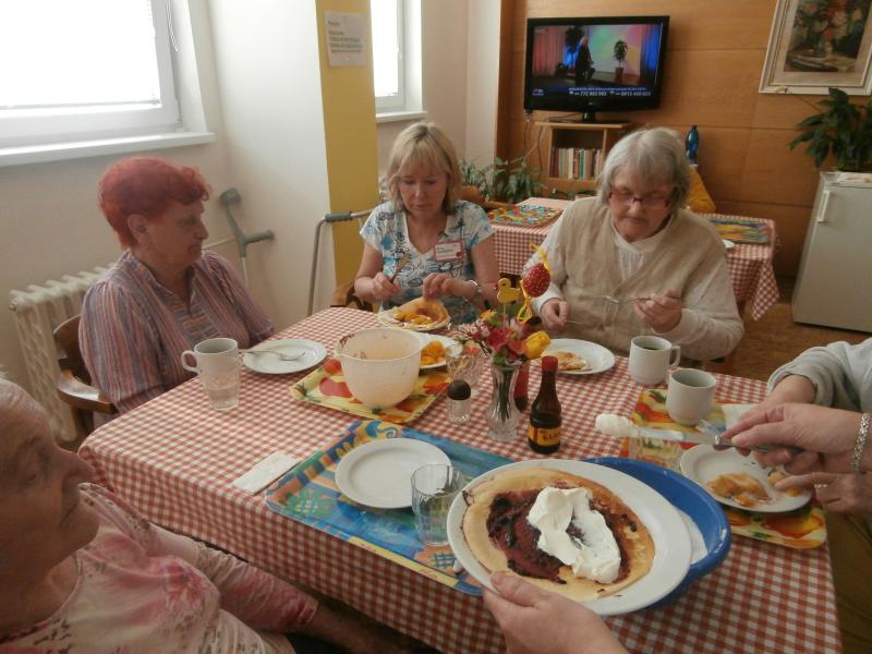 Usmažili jsme si palačinky s ovocem, marmeládou, čokoládou.