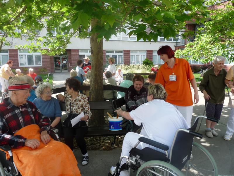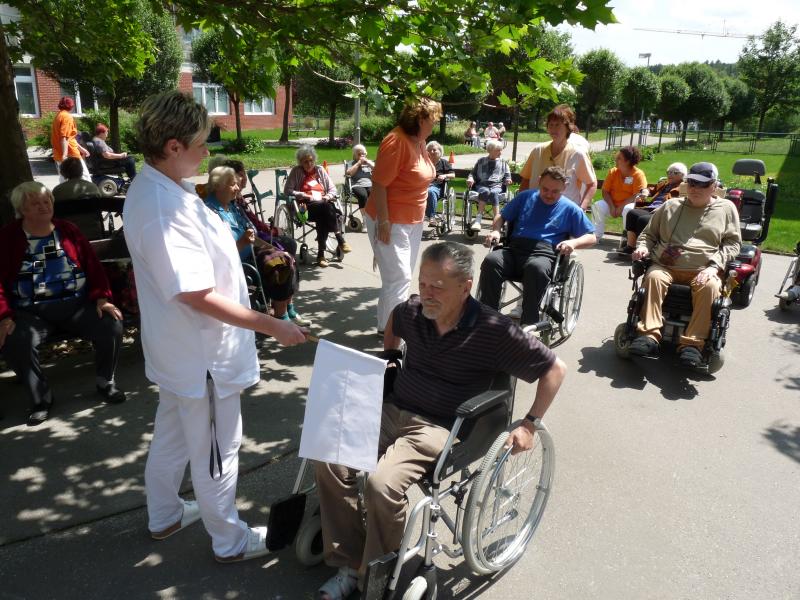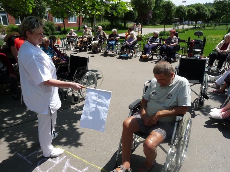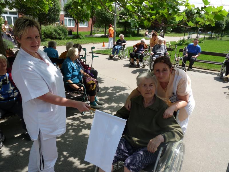 Pro naše klienty na vozíčcích jsme uspořádali závody. Házeli jsme kroužky na cíl, jezdili slalom mezi kužely atd.