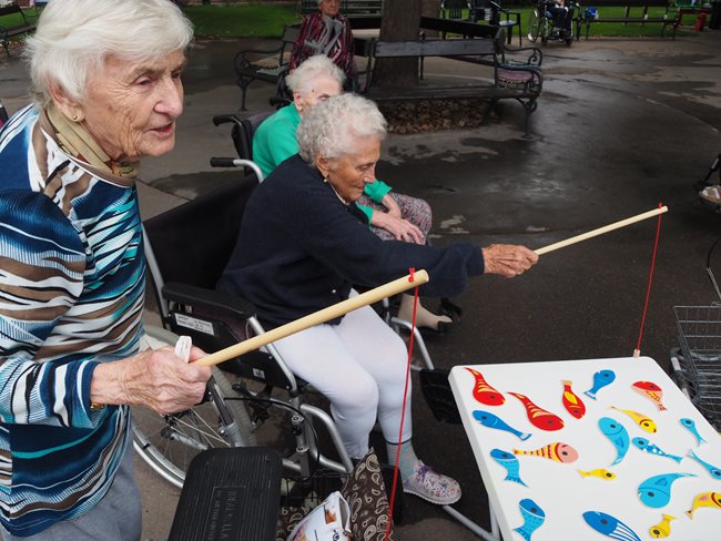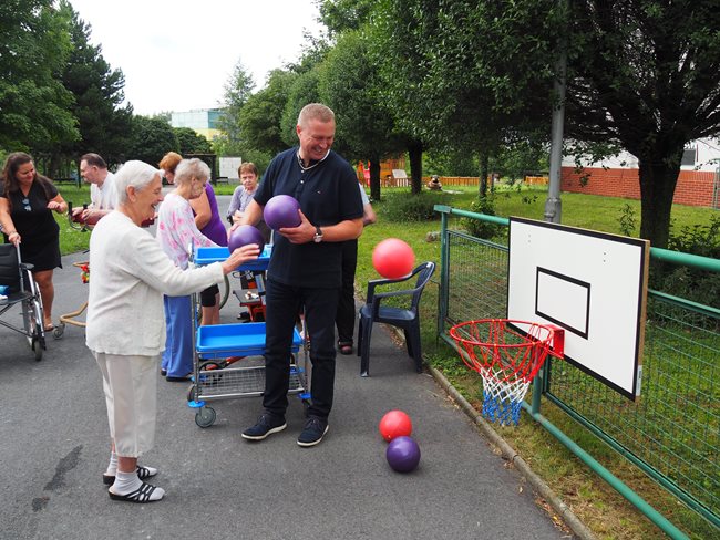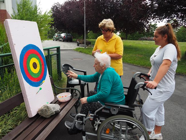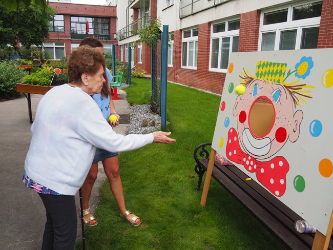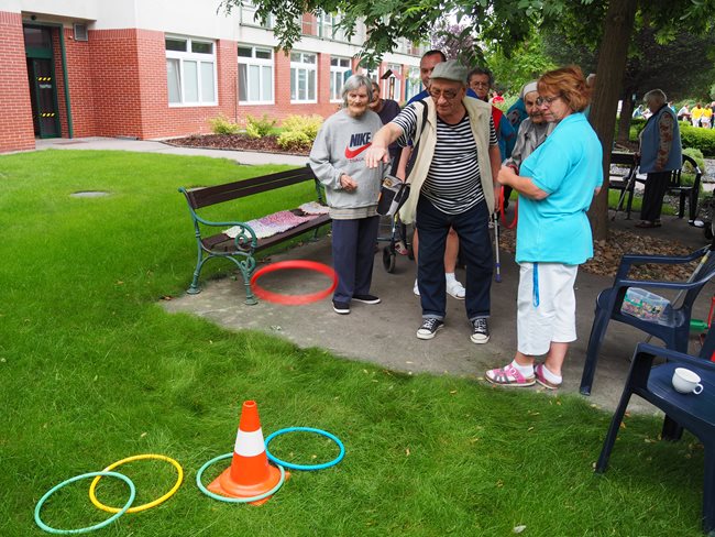 V naší zahradě se dnes konaly sportovní hry. Klienti si procvičili pohyblivost rukou, postřeh, koordinaci pohybů a za své výkony získali sladké odměny. V příjemném počasí se soutěžilo v těchto disciplínách: hod šipkami, hod míčem na cíl, hod tenisovým míčkem na cíl, hod kroužky na cíl a lovení rybiček.