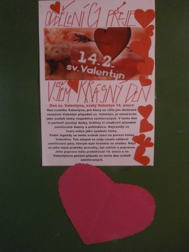 Oslavili jsme svátek sv. Valentýna na odd. C1 výbornou bábovkou, povídáním o tomto svátku a našich láskách.