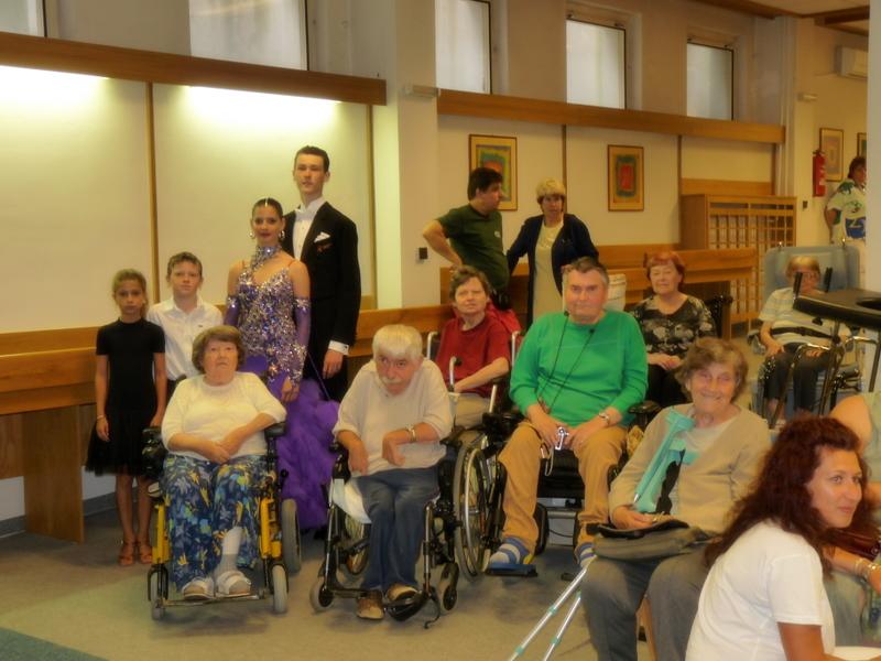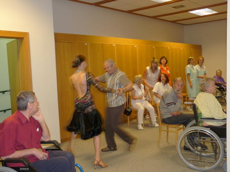 V kinosále domova předvedli tanečníci klubu Komety Brno standardní a latinsko-americké tance. Tanečníci doplnili vystoupení mluveným slovem, krásnými kostými a vyprávěním o svých zážitcích a sportovních úspěších a na závěr si zatančili i s klienty. Netradiční vystoupení mělo velký úspěch.