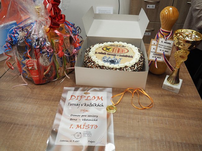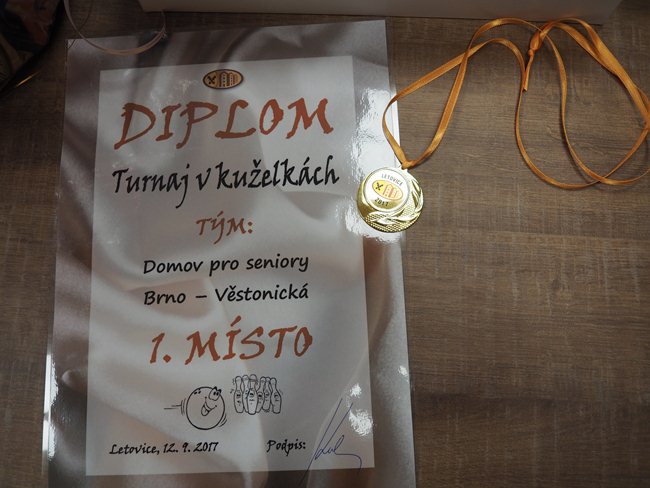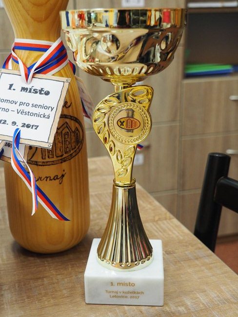 Tým kuželkářů, ve složení kapitánka paní Dvořáčková, pan Čuma, pan Kukla a pan Vávra, vybojoval na turnaji v Domově pro seniory Letovice zlaté medaile a putovní kuželku.