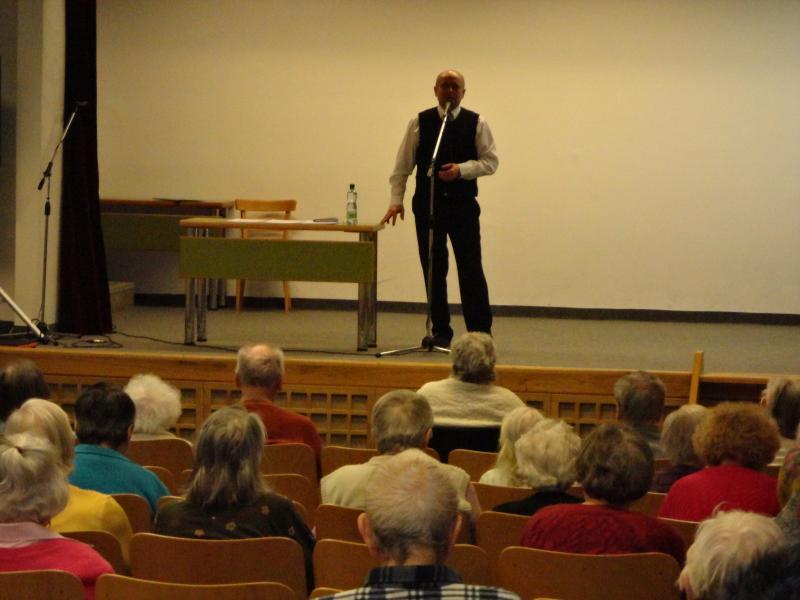 "Podzim pro seniory" je název maturitního projektu Michaely Woffové. Dnes jsem si vyslechli umělecký přednes pana Jaroslava Brendla...