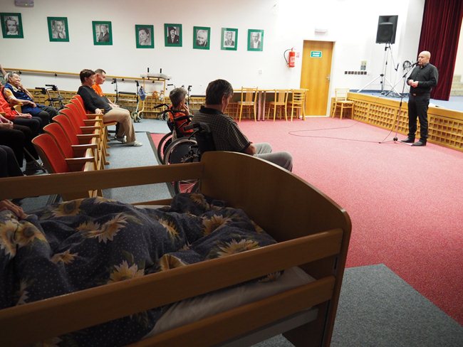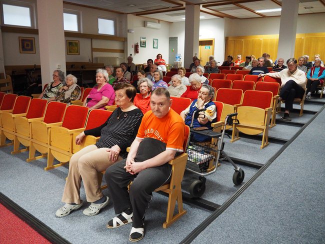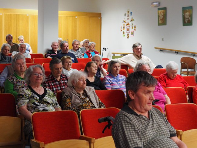 "Podzim pro seniory" je název maturitního projektu Michaely Woffové. Dnes jsem si vyslechli umělecký přednes pana Jaroslava Brendla...