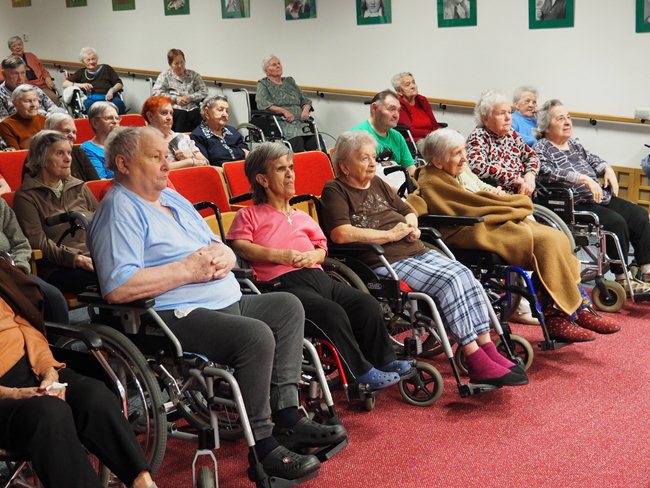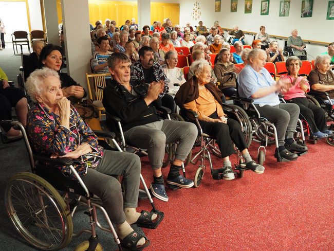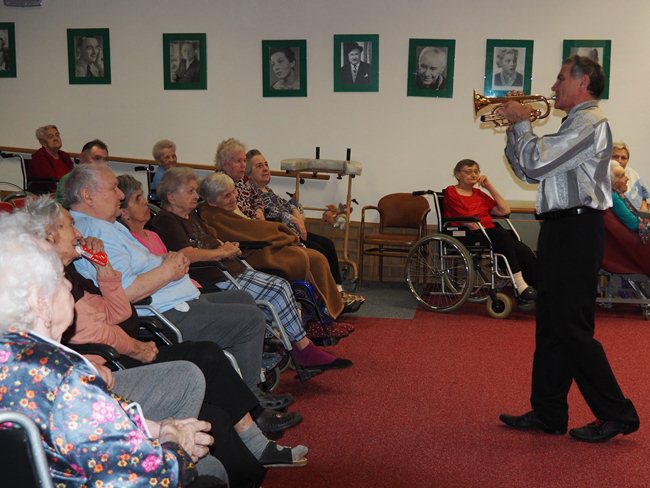 "Podzim pro seniory" je název maturitního projektu Michaely Woffové. Dnes jsem si vyslechli umělecký přednes pana Jaroslava Brendla...