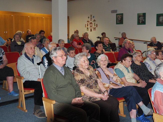 "Podzim pro seniory" je název maturitního projektu Michaely Woffové. Dnes jsem si vyslechli umělecký přednes pana Jaroslava Brendla...