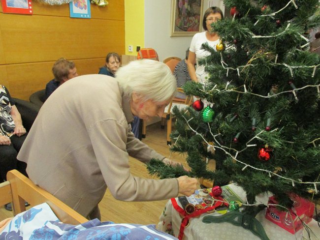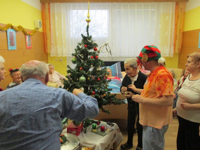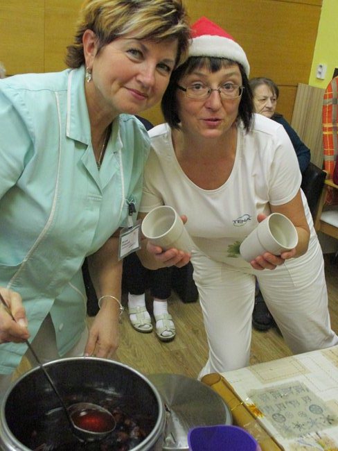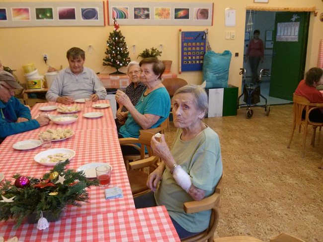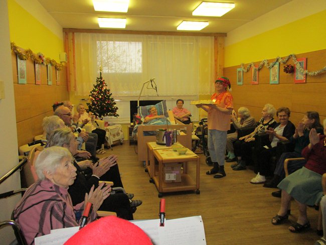 Vánoční večírky na oddělení C1, C4 a C5 s cukrovím, dortem, vánočkou a zpěvem koled.