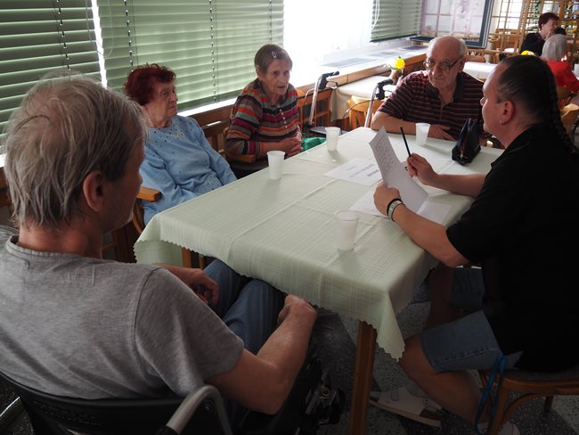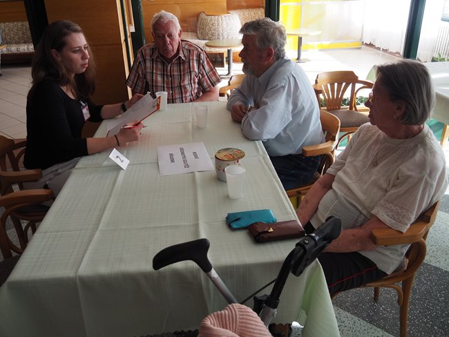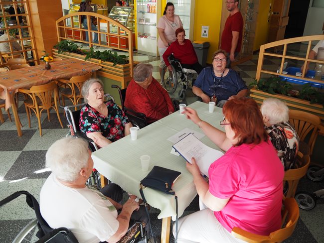 Dnešní odpoledne jsme soutěžili ve znalostech z různých vědních a společenských oborů. Týmy byly složeny z několika klientů a odpovídaly na otázky týkající se zeměpisu, lidského těla, Karla Gotta a dalších záludných otázek.