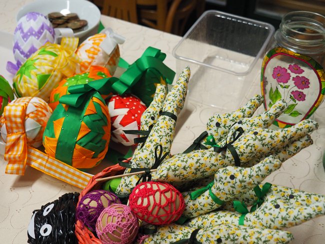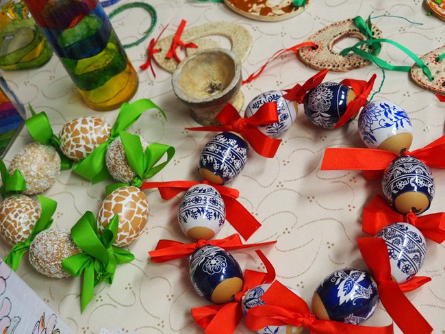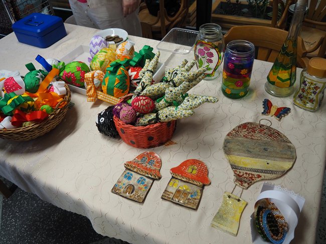 Velikonoční výstava výrobků z keramiky, papíru, textílií a jiného materiálu.