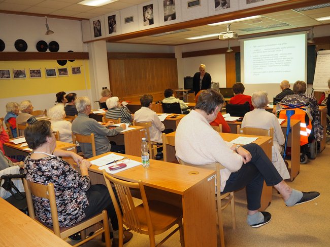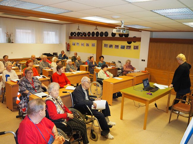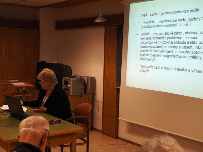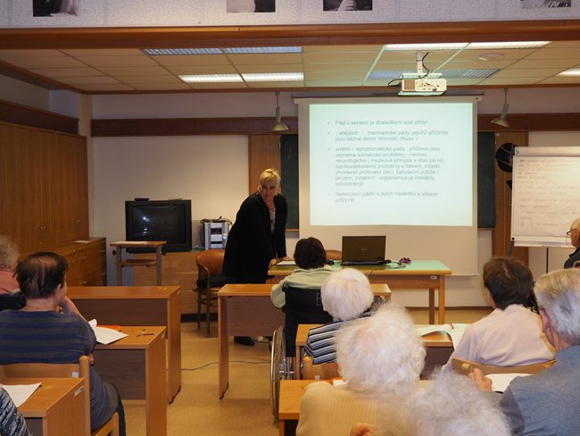 Přednáška o bezpečném pohybu ve stáří pro studenty Věstonické akademie byla věnována příčinám pádů u seniorů. Přednášející paní Zavřelová seznámila také klienty s možnostmi, jak pádům předcházet a co dělat, když již k pádu dojde.