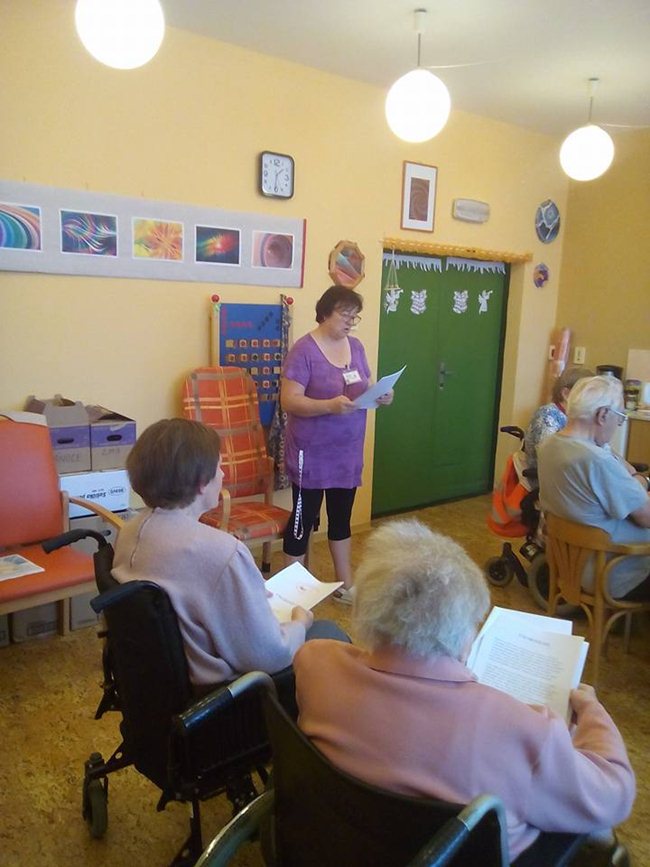 "Podzim pro seniory" je název maturitního projektu Michaely Woffové. Dnes jsem si vyslechli umělecký přednes pana Jaroslava Brendla...