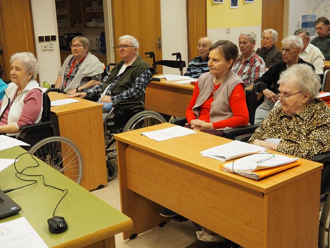 "Podzim pro seniory" je název maturitního projektu Michaely Woffové. Dnes jsem si vyslechli umělecký přednes pana Jaroslava Brendla...