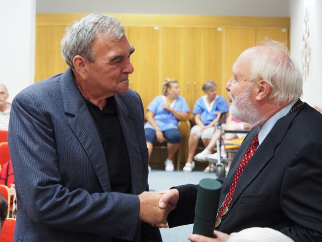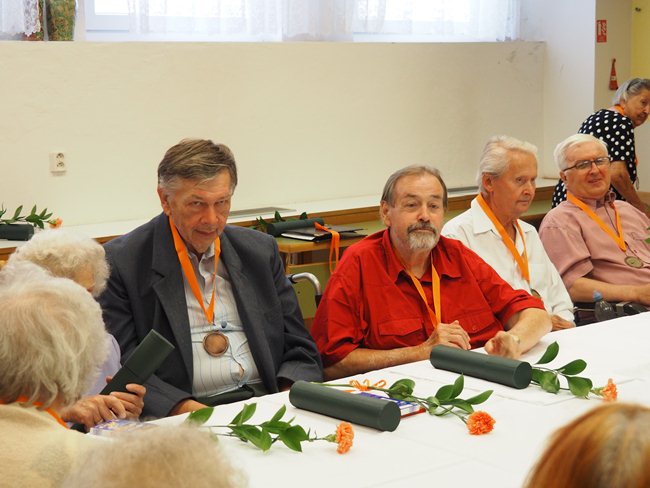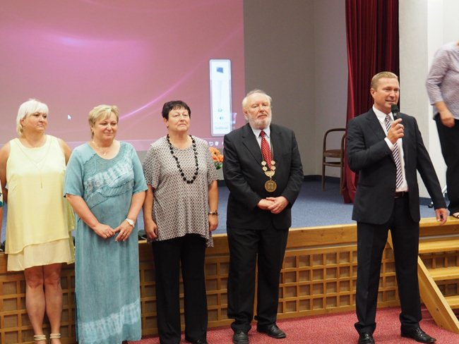 Předávání diplomů a pamětních medailí se tradičně ujali pan starosta ÚMČ Vinohrady, pan PhDr. Jiří Čejka a pan ředitel Ing. Nytl.