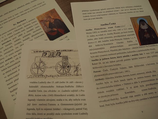 V přednáskách Mgr. Elišky Hradilové jsme slyšeli příběhy známých a méně známých světců a patranů. Dozvěděli jsme se o světových a českých světcích jako je sv. Václav, Jan Nepomucký, Jana z Arku, Anežka Česká, o patronech řemesel, měst a států.