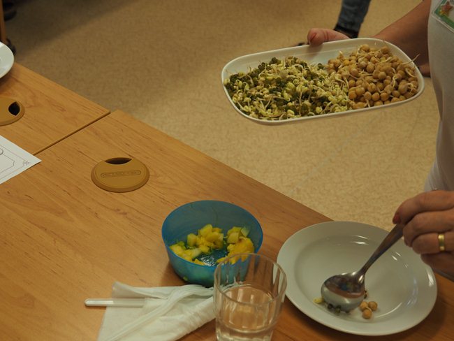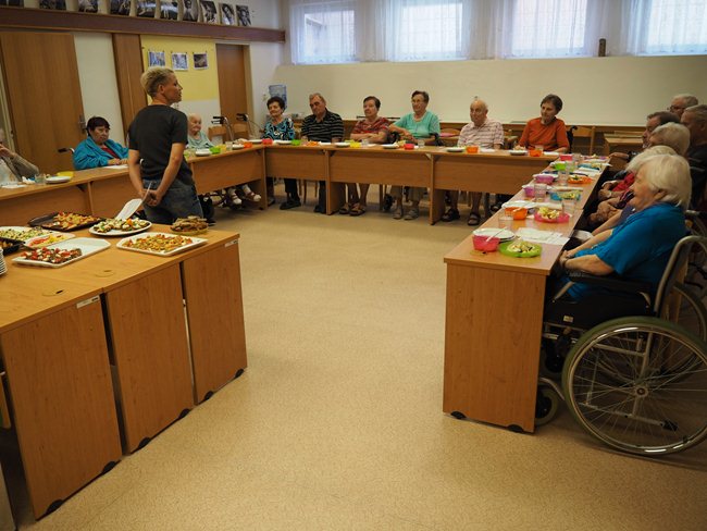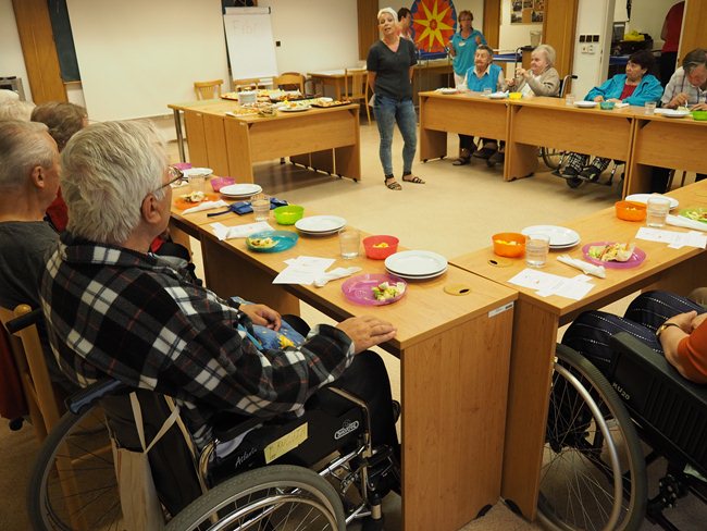 Dnešní hodina Věstonické akademie byla věnována výživě ve stáří. Paní Kateřína Rod připravila pokrmy a vysvětlila v čem spočívá vegetariánská strava. Ochutnávka pokrmů z tofu, naklíčené cizrny, červené čočky, pečené zeleniny, dýňové polévky, ovocného salátu, limonády z bylinek, vegetariánských "uzenin" a paštik atd.