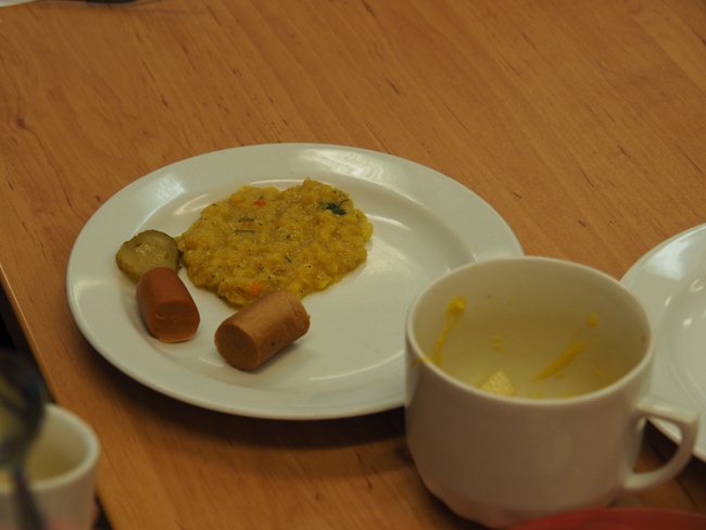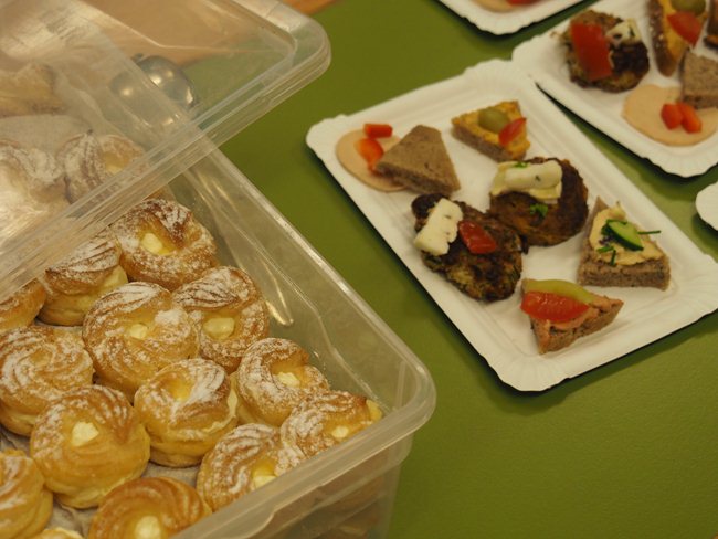 Na konci přednášky bylo možno ochutnat "nezdravá" jídla - řízek, bůček, věnečky.