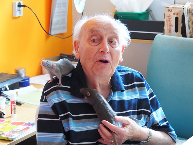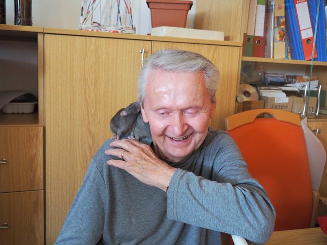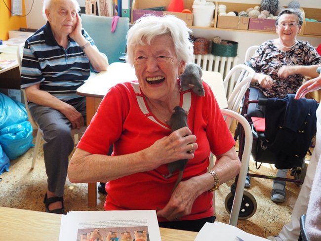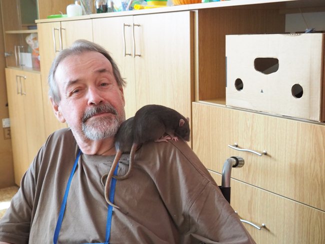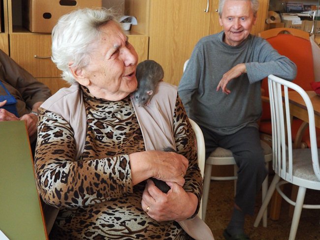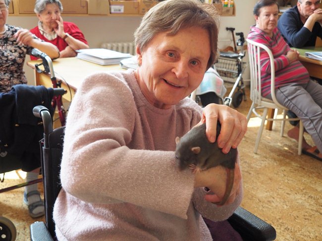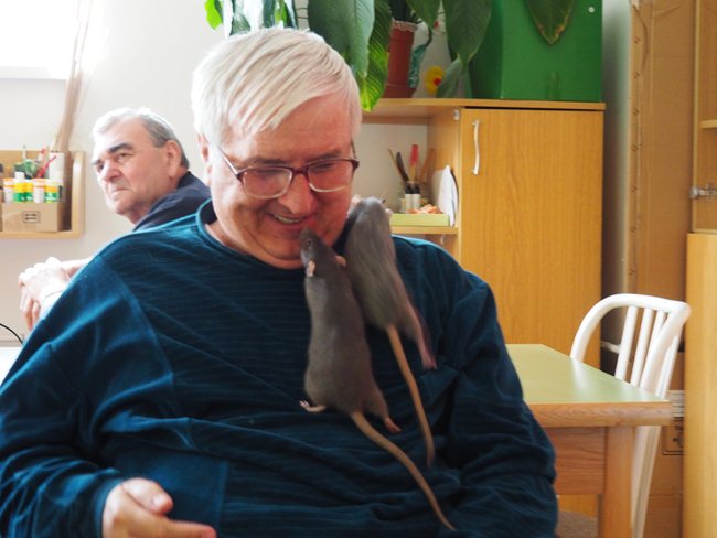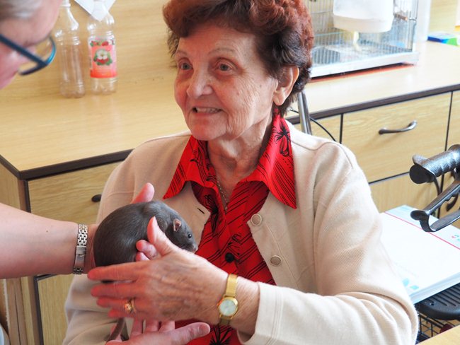 Dnešní přednáška Věstonické akademie byla věnována zooterapii. Mohli jsme si prohlédnout terapeutické potkany. Někteří odvážní studenti si potkany pohladili a pochovali. Příště uvidíme další zvířata.