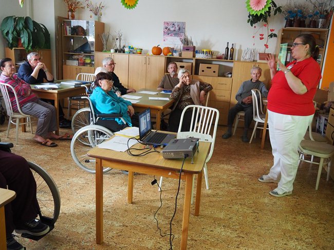 "Podzim pro seniory" je název maturitního projektu Michaely Woffové. Dnes jsem si vyslechli umělecký přednes pana Jaroslava Brendla...