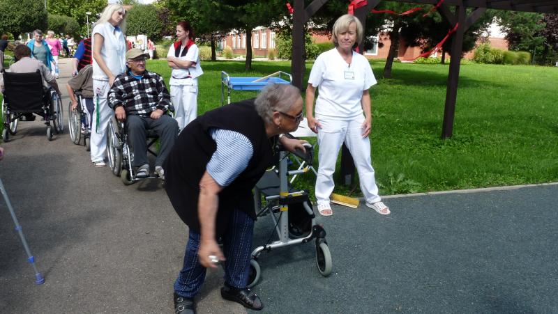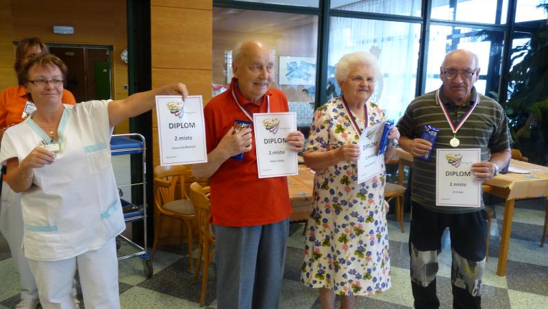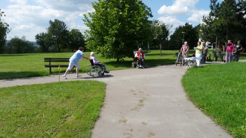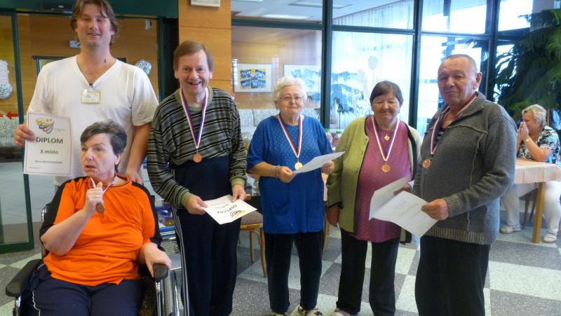 Využili jsme jednoho z posledních pěkných dnů a uspořádali na zahradě domova pro klienty Věstonický pětiboj družstev. Disciplíny: šipky, hod koulí do dálky, hod míčem do koše, jízda na vozíčku na čas a jízda na rotopedu. Každý člen družstva soutěžil v jedné z disciplin.
