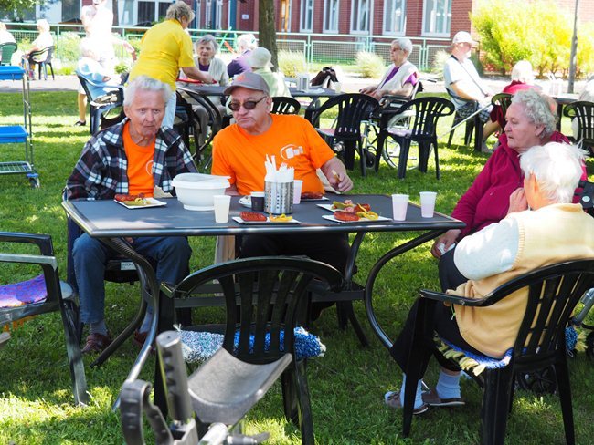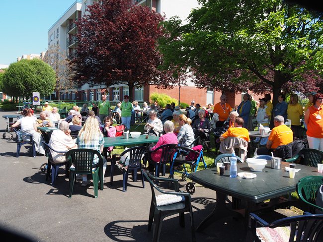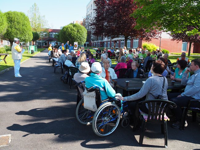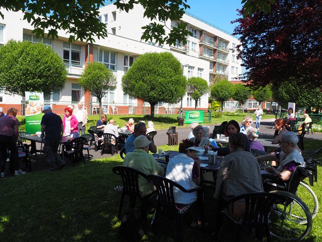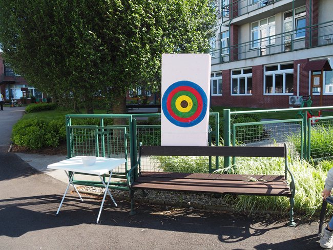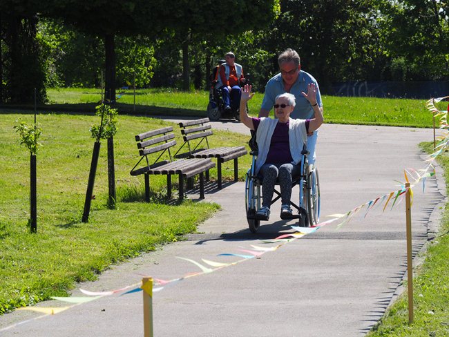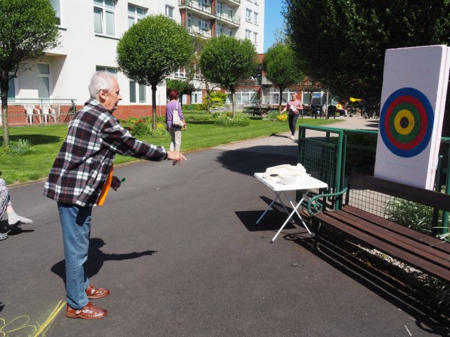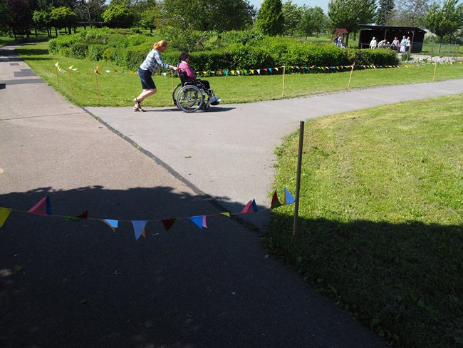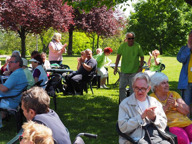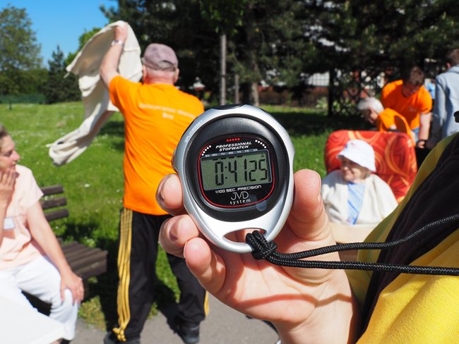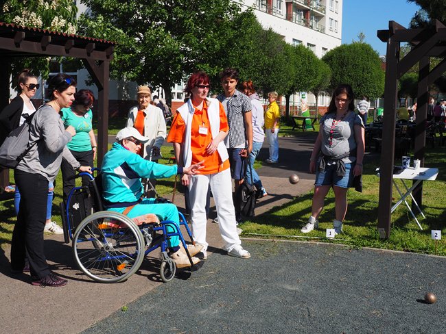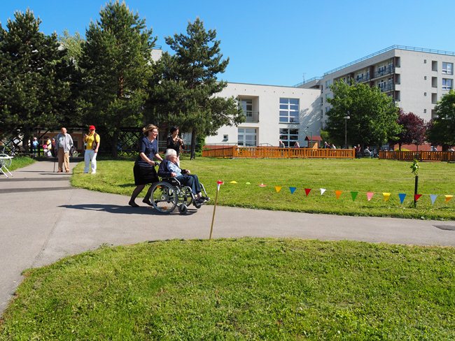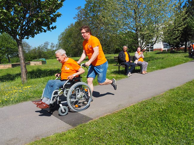 Za krásného slunečného počasí v naší zahradě proběhl již třetí ročník Věstonického pětiboje. Po slavnostním zahájení, vysvětlení pravidel a drobném občerstvení se začalo soutěžit. Deset pětičlenných týmů složených ze čtyř klientů a jednoho zaměstnance z domovů pro seniory v Brně soutěžilo v pěti disciplínách: košíkové, šipkách, maratonu (běžel zaměstnanec a na vozíku vezl klienta), vrhu koulí a cyklistice.