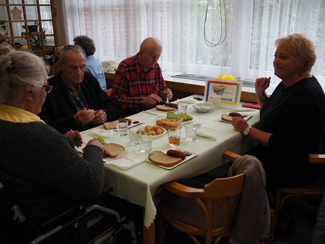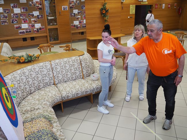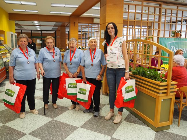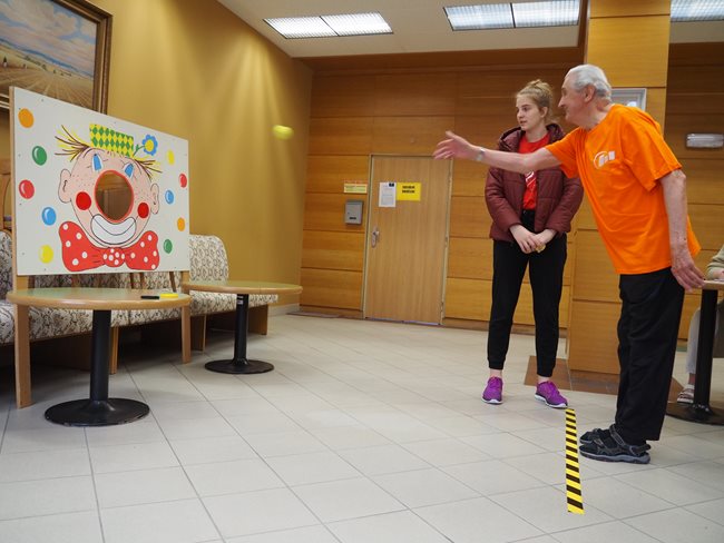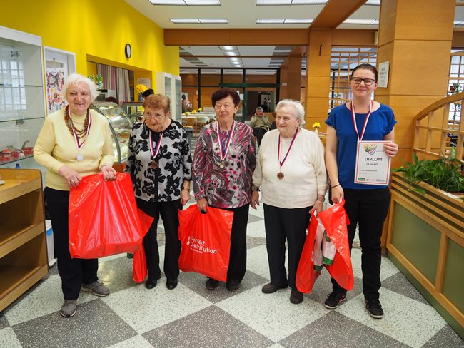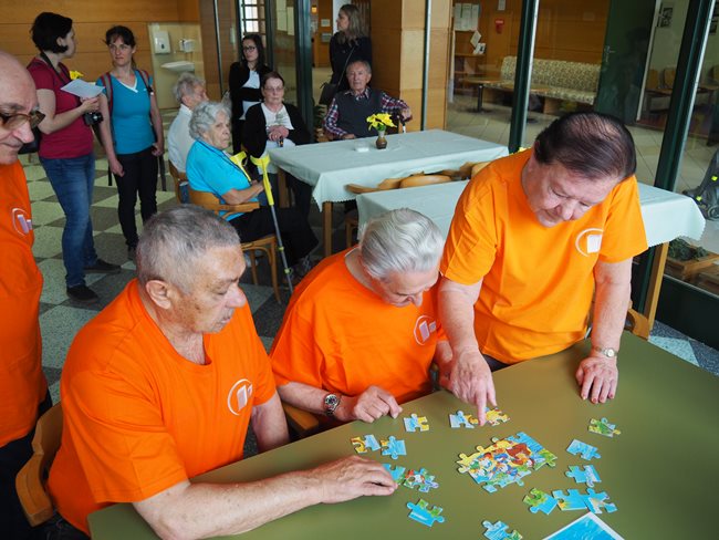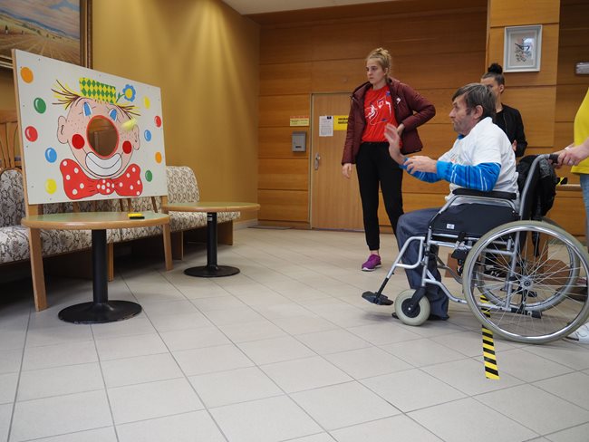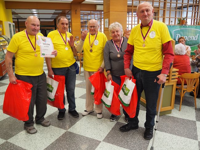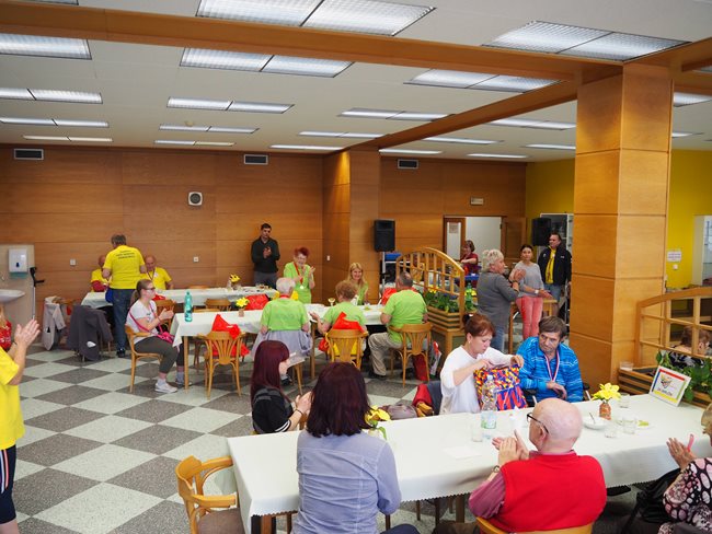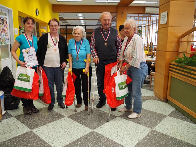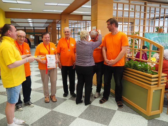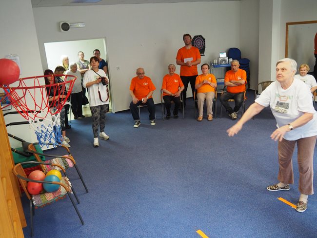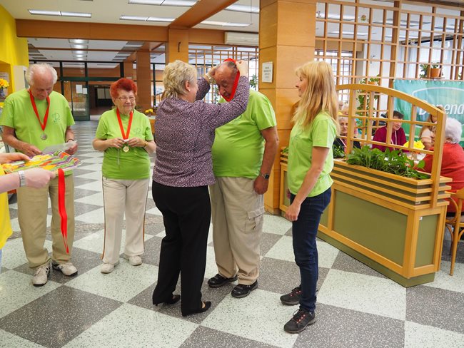 Již pátým rokem jsme se sešli v našem domově při soutěžení družstev složených z klientů různých domovů pro seniory. Letošního ročníku sportovního klání se zúčastnilo devět týmů, které se utkaly v těchto pěti disciplínách: jízda na rotopedu na čas, hod tenisovým míčkem na přesnost (do pusy klauna), hod overballem do basketbalového koše, hod šipkami a skládání puzzle na čas. Stejně jako loni, i letos nám nepřálo počasí a sportoviště jsme museli vytvořit v útrobách domova. Doufáme, že příští rok nám bude přát počasí a budeme moci k tomuto oblíbenému pětiboji využít naši rozsáhlou zahradu.