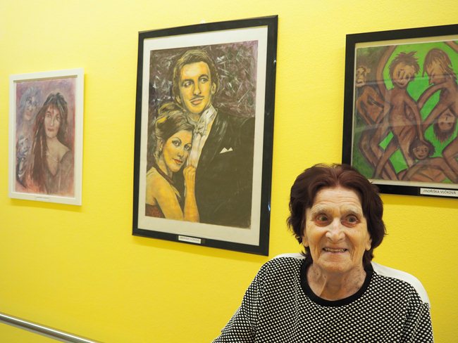 Na chodbě oddělení A2 byly vystaveny obrazy paní Vlčkové Jindřišky.