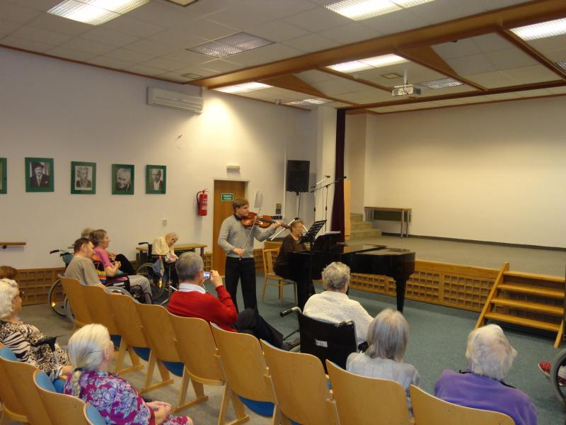 "Podzim pro seniory" je název maturitního projektu Michaely Woffové. Dnes jsem si vyslechli umělecký přednes pana Jaroslava Brendla...