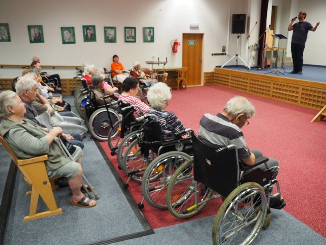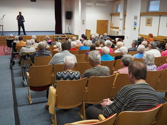 "Podzim pro seniory" je název maturitního projektu Michaely Woffové. Dnes jsem si vyslechli umělecký přednes pana Jaroslava Brendla...