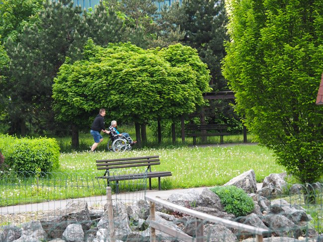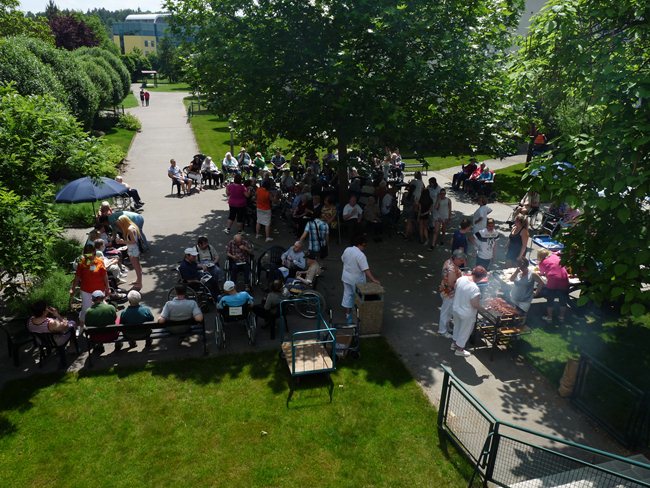 Domov pro seniory je umístěn uprostřed rozlehlé zahrady. Součástí zahrady je rybníček s rybkami, posezení pod pergolami, lavičky k odpočinku, ovocné stromy, ořešáky, truhlíky pro pěstování bylin, květin a drobných plodů (např. jahody). Posilovací stroje zde slouží k protažení unavených končetin. V zahradě je také umístěna venkovní hra "Člověče, nezlob se...", ruské kuželky a hřiště pro petanque. Jsou zde pořádány různé kulturní akce - např. tradiční důchodcovské hody, Věstonický pětiboj, turnaj v petanque, sportovní den, grilování špekáčků...