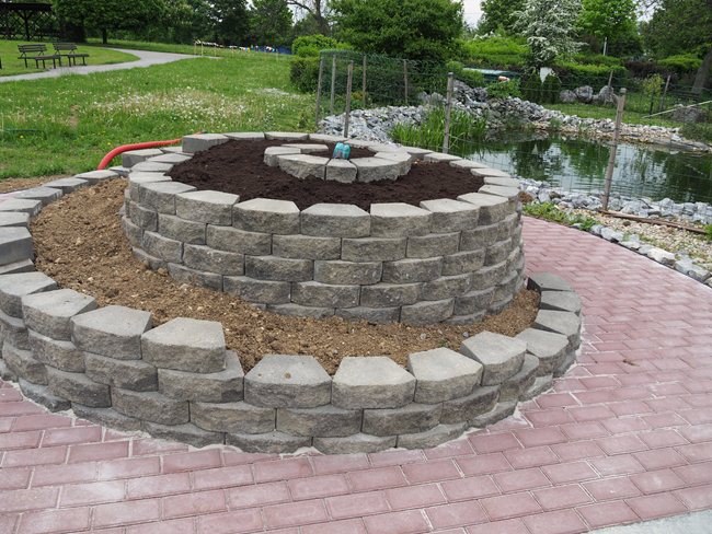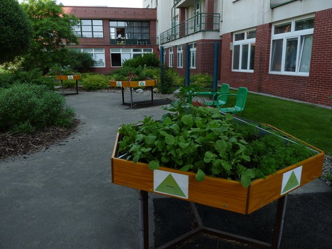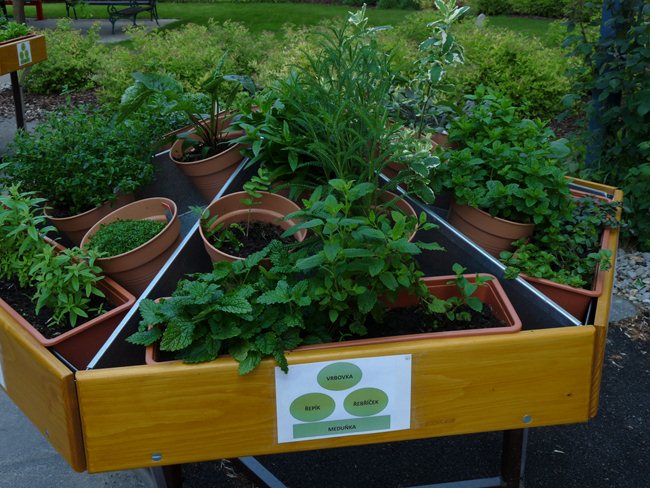 Jsou zde vysázeny drobné bobulové keře (rybíz, josta, angrešt) a vybudována bylinková spirála.