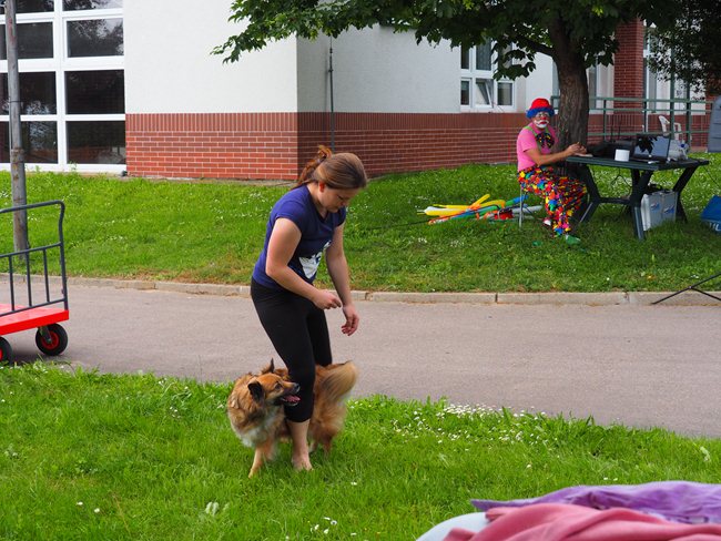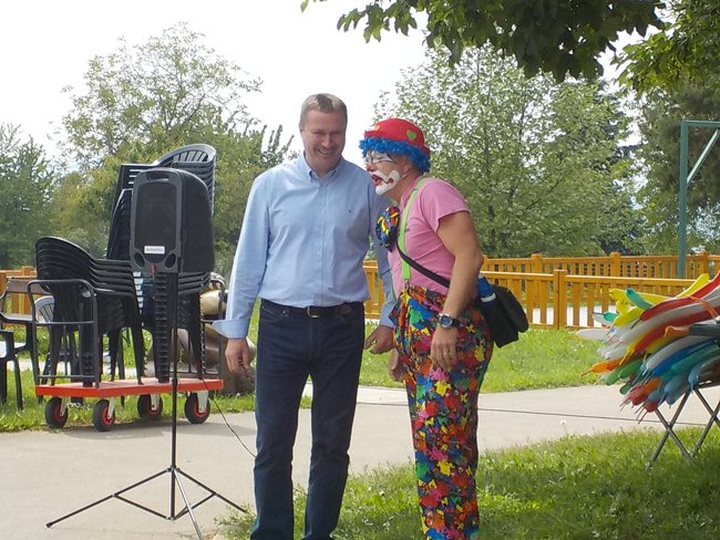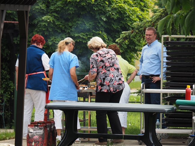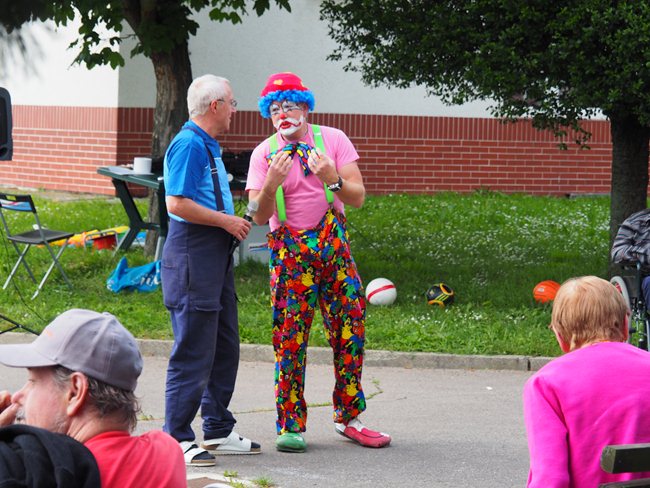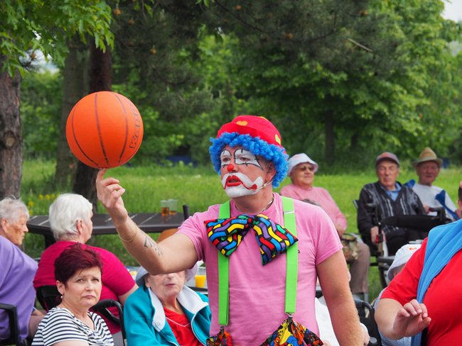 Zahradní slavnost zahájil pan ředitel Ing. Nytl. Oslavou nás provázel klaun David. Shlédli jsme také vtipné vystoupení cvičitelky a jejího pejska a pochutnali si na dobrém občerstvení.