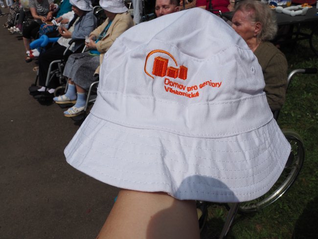 Klienti dostali jako upomínku na tuto oslavu kloboučky a kšiltovky.