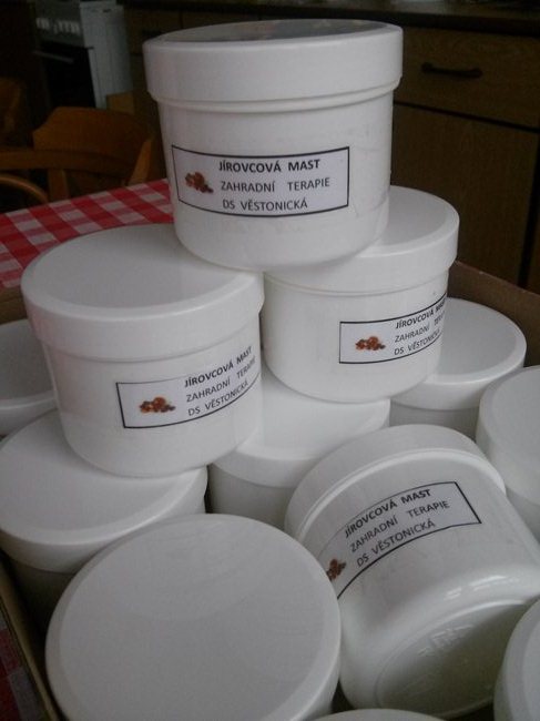 Na setkání zahradní terapie se tak trochu čarovalo jako za babek kořenářek - vařila se mast z jírovce (kaštanů) proti bolení kloubů.