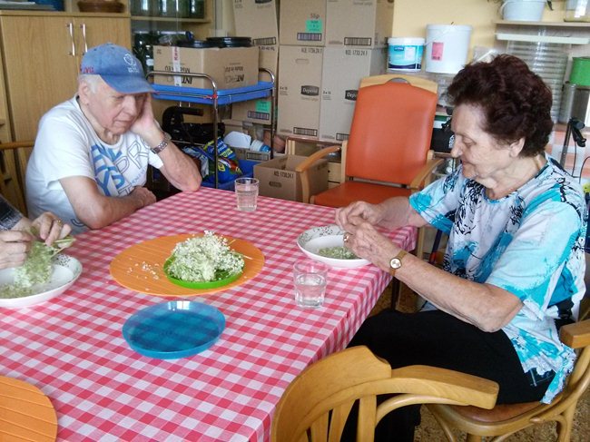 Oblíbenou činností je zahradní terapie. Nasbírali jsme si potřebné květy a uvařili jsme z nich pampeliškový med a sirup z bezových květů.
