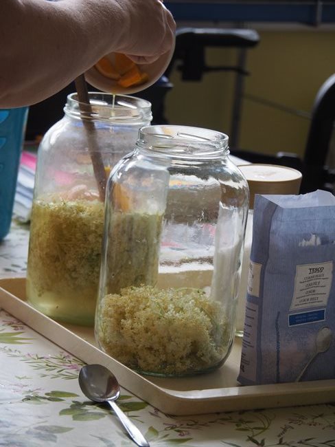 Poslechli jsme si povídání o kouzelných bezových květech, ze kterých se dá vyrobit bezový sirup a limonáda. Ty jsme si připravili a protože se musí nějaký čas macerovat, vypijeme si je při příští zahradní terapii.