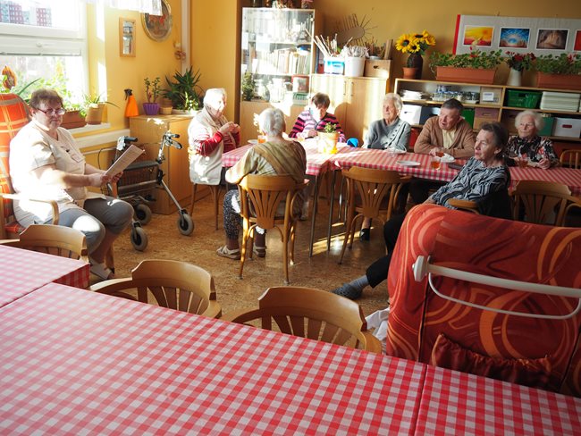 "Podzim pro seniory" je název maturitního projektu Michaely Woffové. Dnes jsem si vyslechli umělecký přednes pana Jaroslava Brendla...