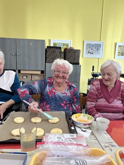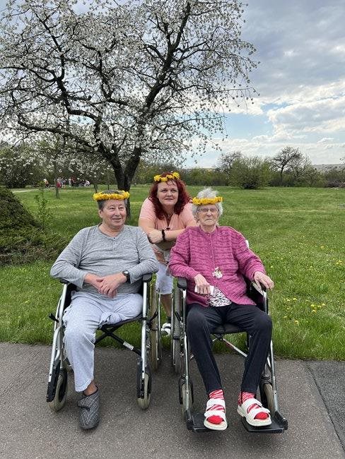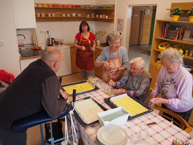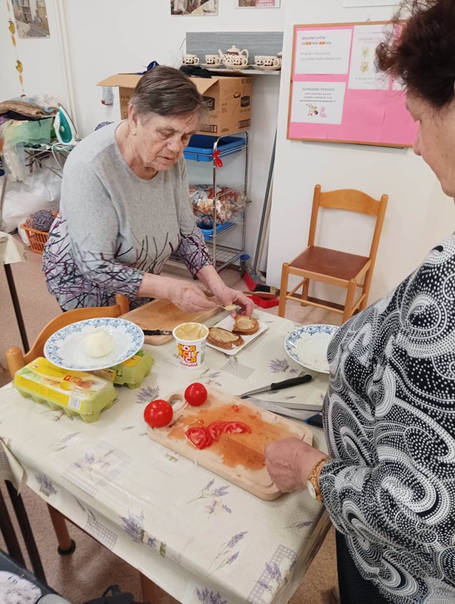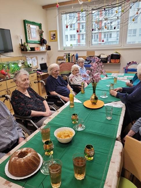 Protože rádi vaříme a uvařené a upečené rádi jíme, připravili jsme si bábovku, koláče, chleby ve vajíčku a slané tyčinky. Společně jsme oslavili narozeniny. Zahrada je plná pampelišek a láká nejen k procházkám, ale také k uvaření pampeliškového medu. Klientky zavzpomínaly, jaké to bylo, když jako malá děvčátka pletla věnečky.