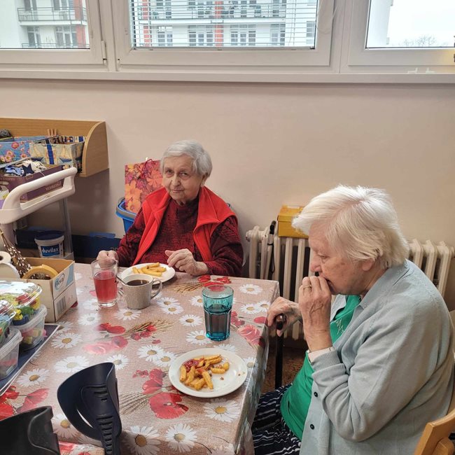 Máme rádi hranolky s kečupem, tak si je občas připravíme a s chutí sníme. Pochutnáme si také na společně připravené svačině - miskách plných ovoce.