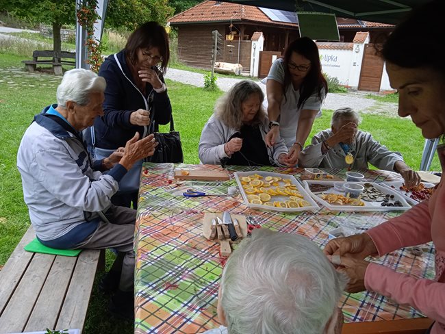 V enviromentálním centru Lipka si naši klienti na oslavu Dne seniorů vyrobili pomerančový ocet, upekli jablkový závin a ochutnali různé čerstvé ovocné šťávy. Součástí programu byl houslový recitál, který klienty velmi potěšil.