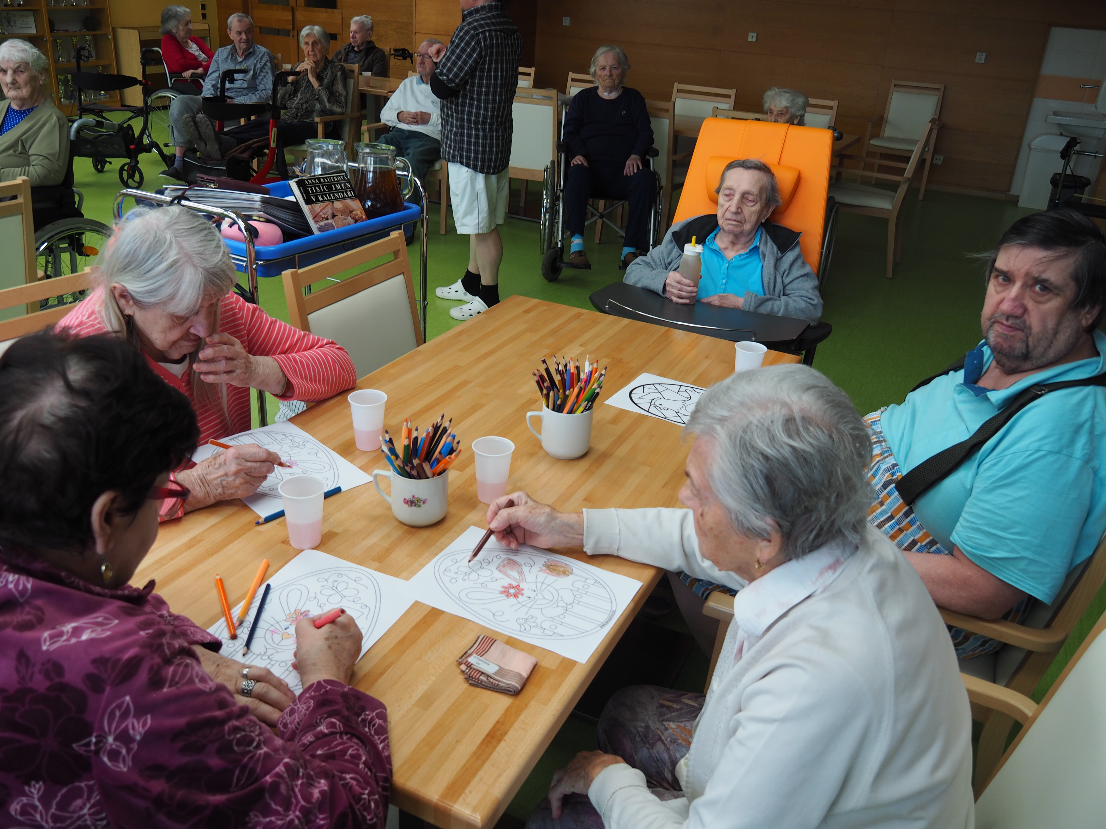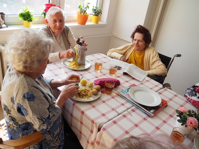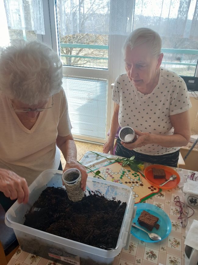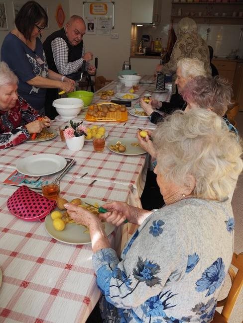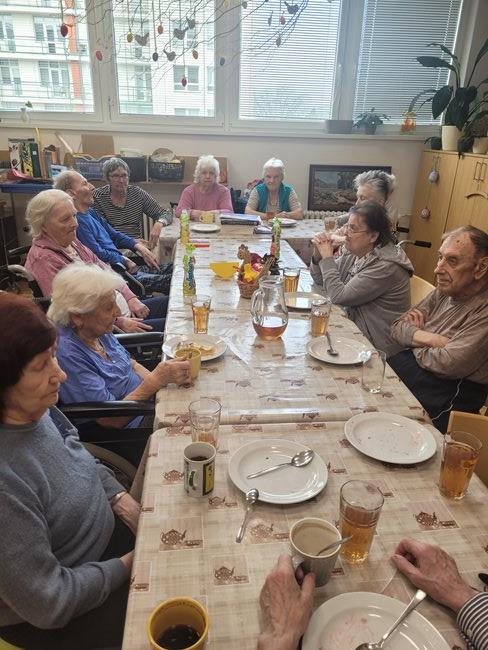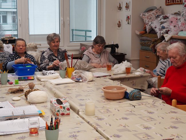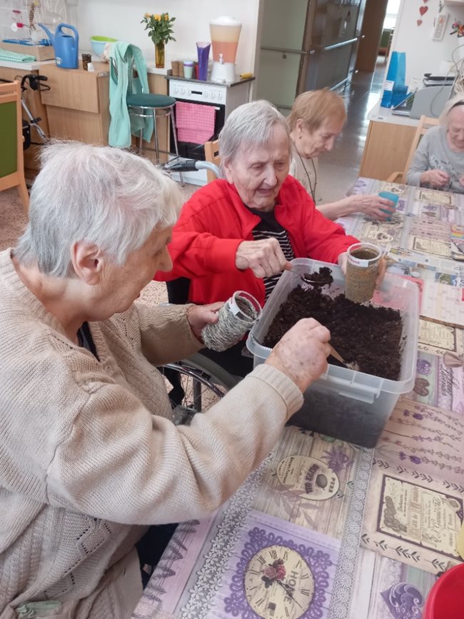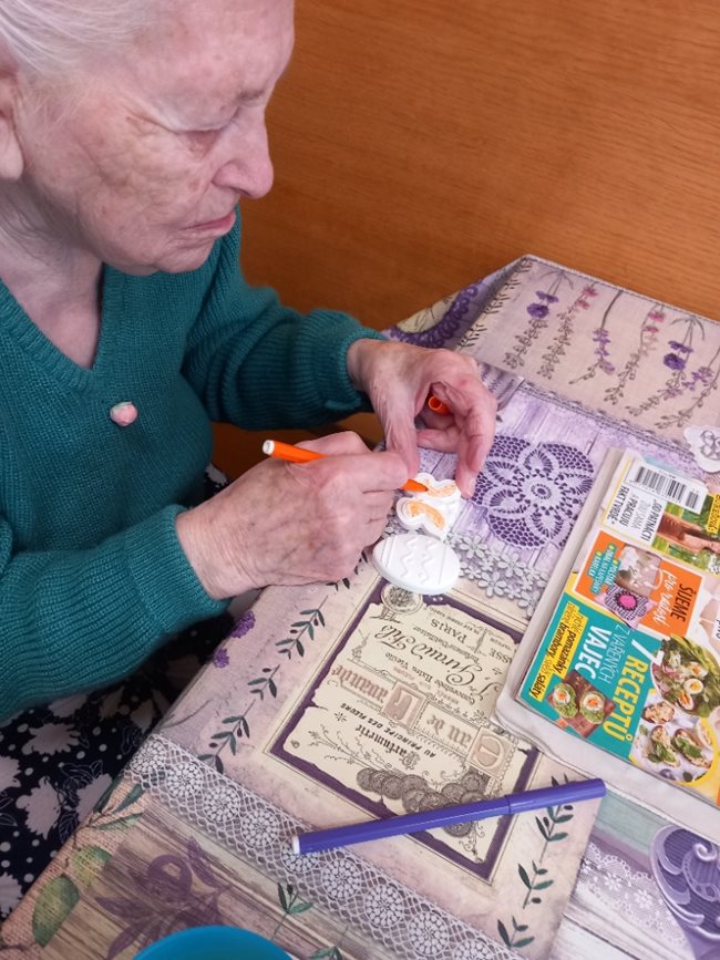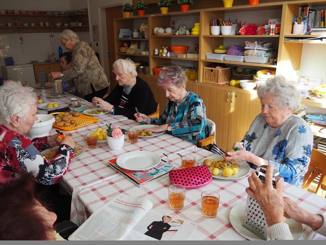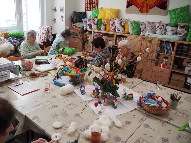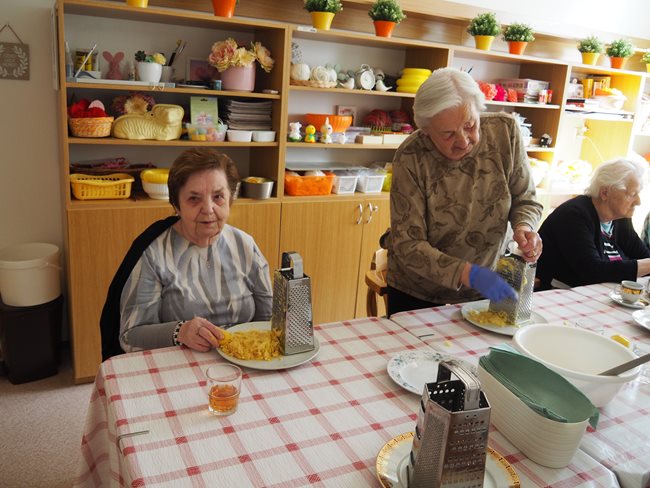 Oblíbenou činností v aktivizačním klubu je příprava a jezení bramboráků a palačinek. Zasadili jsme si ale také zdravé bylinky a vyrábíme si velikonoční výzdobu. Skládankami procvičujeme paměť, vyrábíme polštářky a malujeme na jarní sádrové motýlky.