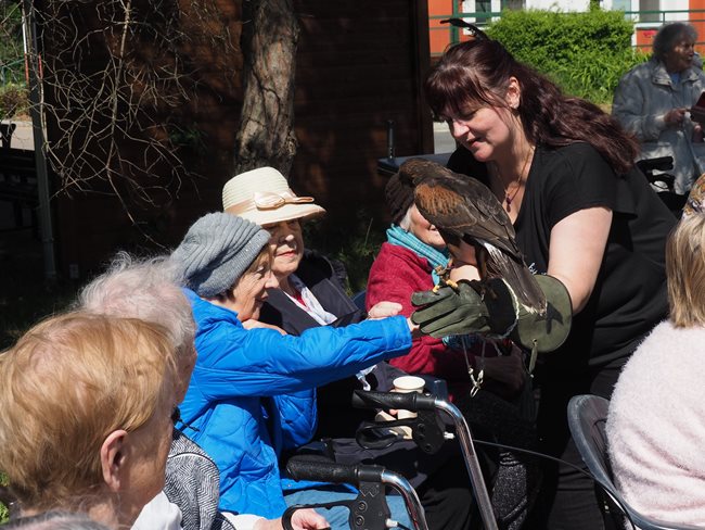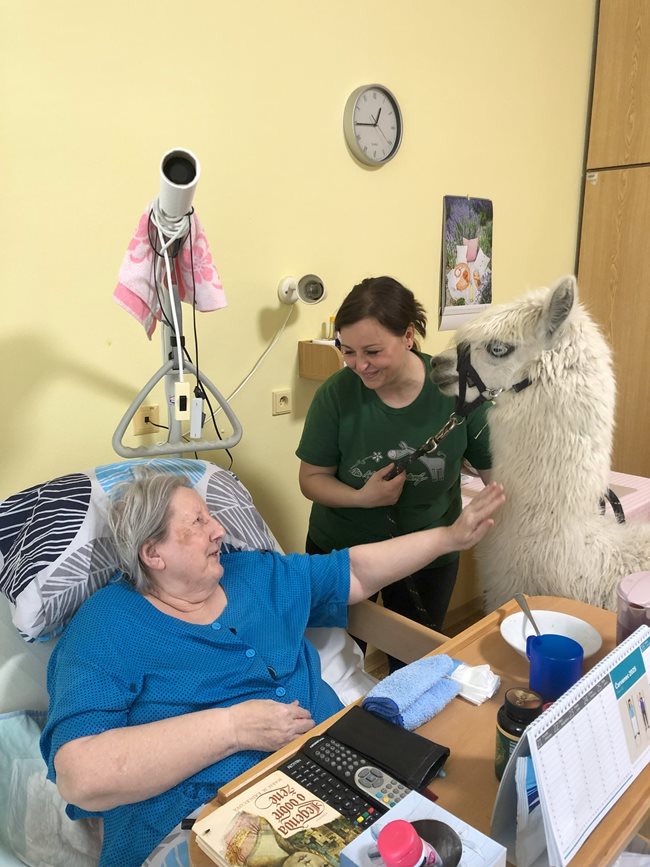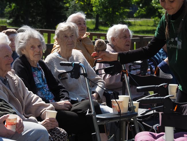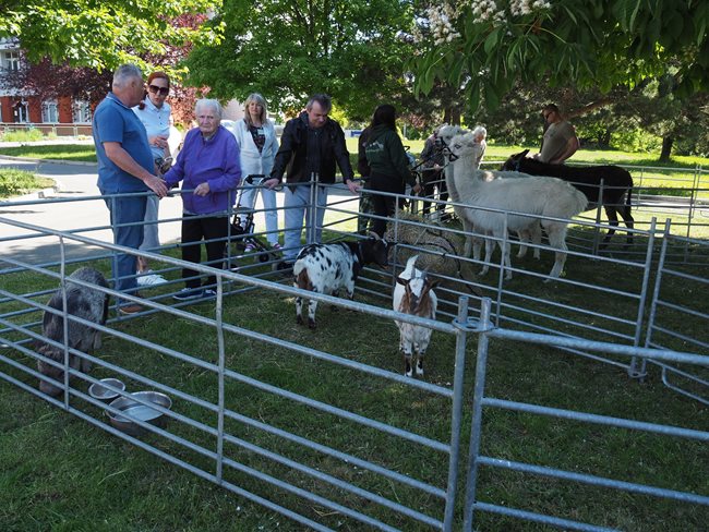 Náš domov rozzářila milá zvířecí společnost z minifarmy „Na tý louce zelený“. Kopýtka, hebká srst, tiché pohyby a hřejivé pohledy vytvořily den plný radosti, dojetí a klidné pohody. Zvířátka potěšila klienty nejen na zahradě, kde se mohli pomazlit a zblízka si je prohlédnout, ale navštívila také ty, kteří zůstali ve svých pokojích. I tam přinesla úsměv a pohlazení. Přinesla s sebou to nejcennější – blízkost a porozumění beze slov. Stačil jemný dotek, pohled nebo chvilka ticha. Pro mnohé z našich klientů to byl návrat do dětství, připomínka života na venkově a chvílí strávených mezi domácími zvířaty. Byl to den opravdových emocí. Laskavý, srdečný a hluboce lidský. Velké poděkování patří minifarmě, která k nám nepřivezla jen zvířata, ale i radost, klid a nevšední zážitek, který zůstane v srdcích.