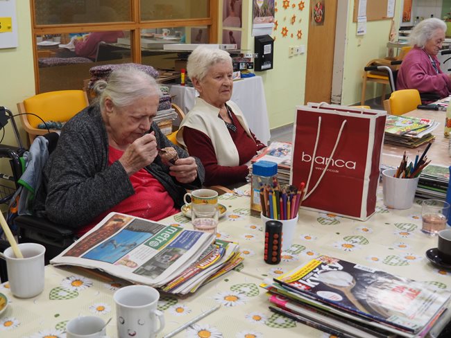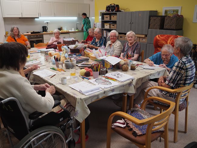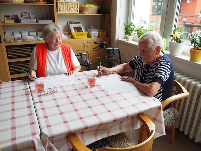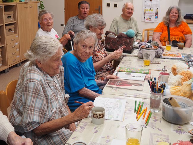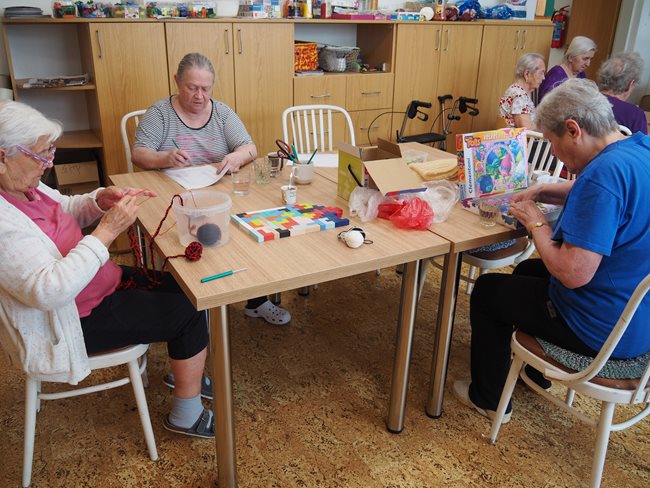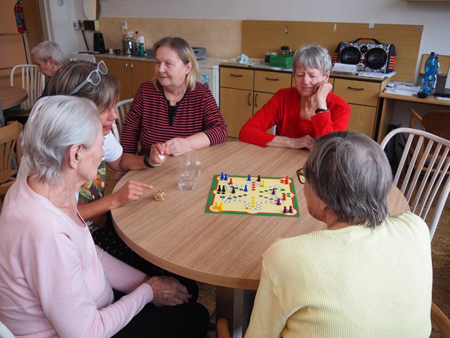 Když prší a nemůžeme být venku v naší krásné zahradě, tak v aktivizačních klubech hrajeme hry (bingo, Člověče, nezlob se...), malujeme, skládáme nejrůznější skládačky, čteme si noviny a časopisy, háčkujeme a povídáme si.