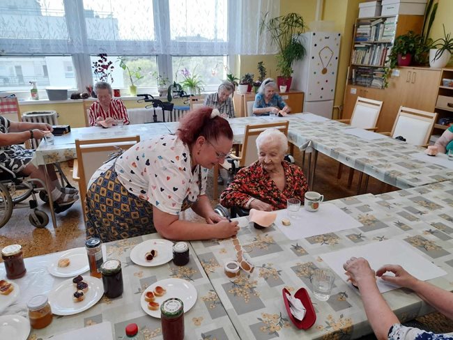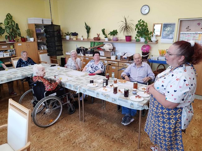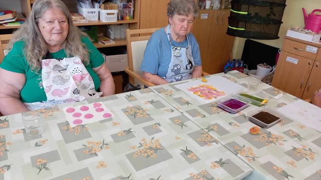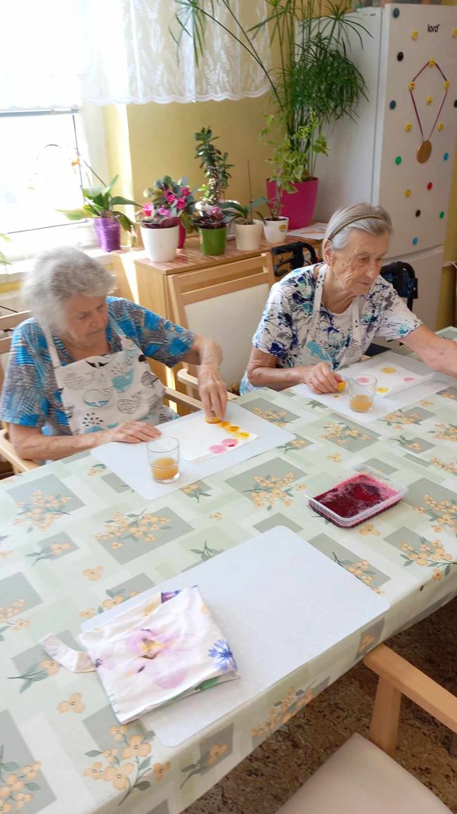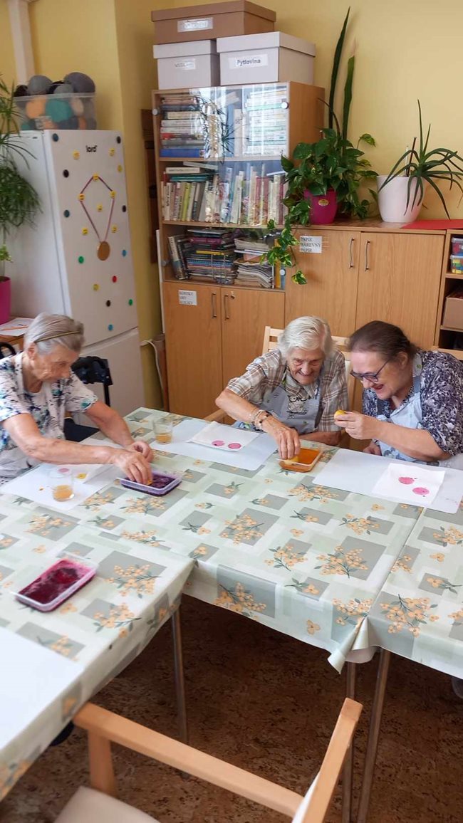 V zahradní terapii jsme si připravili ovocné marmelády a pomocí přírodních barviv jsme vytvářeli obrázky.