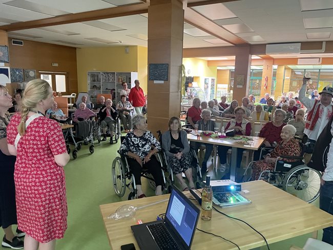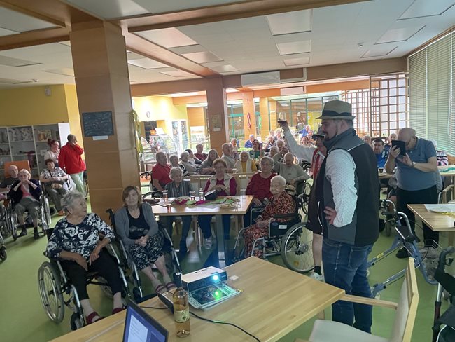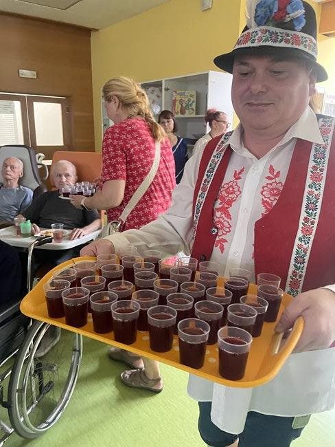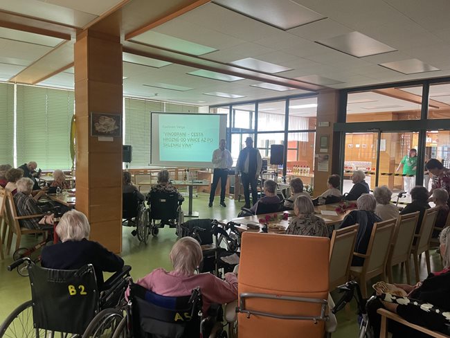 V našem domově jsme si poprvé užili podzimní moravské vinobraní, které doprovodil sommelier Radovan Varga. Klientům poutavě vyprávěl o víně – od pěstování hroznů, přes péči o vinici až po samotnou výrobu vína. Součástí programu byla také zajímavá prezentace s fotografiemi, díky které si všichni mohli lépe představit celý proces vzniku vína. Nechyběla ochutnávka výborného moštu a trošky vína, k nimž bylo připraveno chutné občerstvení. Klienti se aktivně zapojovali, zajímali se o různé detaily a měli spoustu zvídavých otázek. Atmosféra byla velmi příjemná, voňavá po podzimu a plná dobré nálady. Na závěr si všichni společně zazpívali známou písničku Vínečko bílé, která dodala celé akci krásnou a veselou tečku.